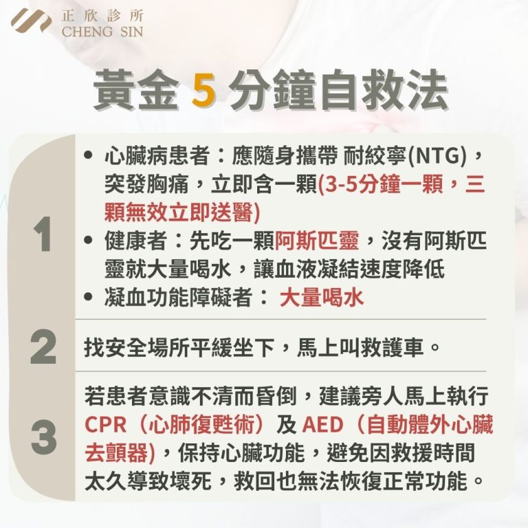 當上述關鍵六症狀的發生,且超過五分鐘,趕快採取下面三步驟。
